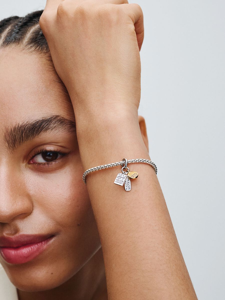 A tribute to your forever friends. This two-tone friends charm has three dangles with engravings that read "TRUE friends are NEVER APART", "maybe in DISTANCE", "but NEVER in HEART".
