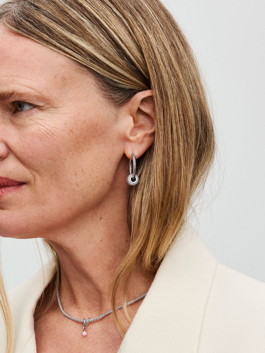 heart charm is a unique addition to your Mum's collection. Two engravings, "There is no one like you" and "Mum", add a loving touch, where the "u" appears as a heart. A dangling, pink