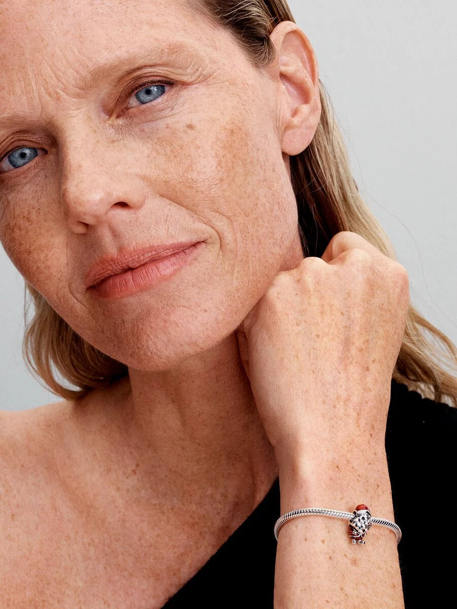 Our Santa charm makes the season merry and bright, crafted in sterling silver with glittery enamel details. His body can even move from side to side for an extra jolly effect.
